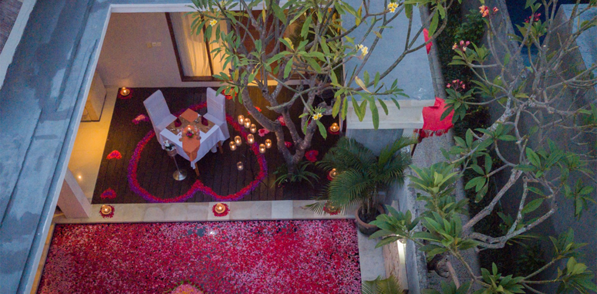 Romance in your villa? Enjoy the romantic atmosphere of a candlelight dinner in the privacy of your villa at the poolside.
